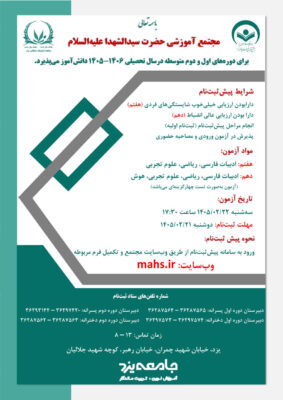 پیش ثبت‌نام آنلاین پایه هفتم دبیرستان پسرانه حضرت سیدالشهداء (ع)